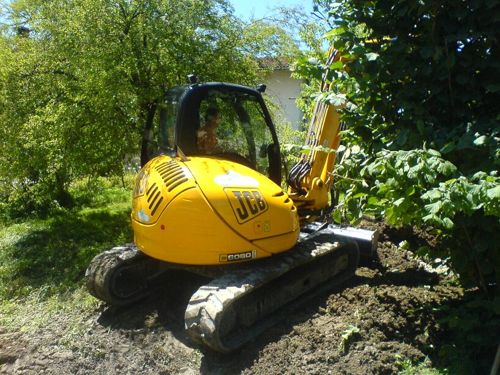 Unser gemieteter JCB 8018 Minibagger wo wir einen Graben ums Haus gezogen haben zum isolieren freu