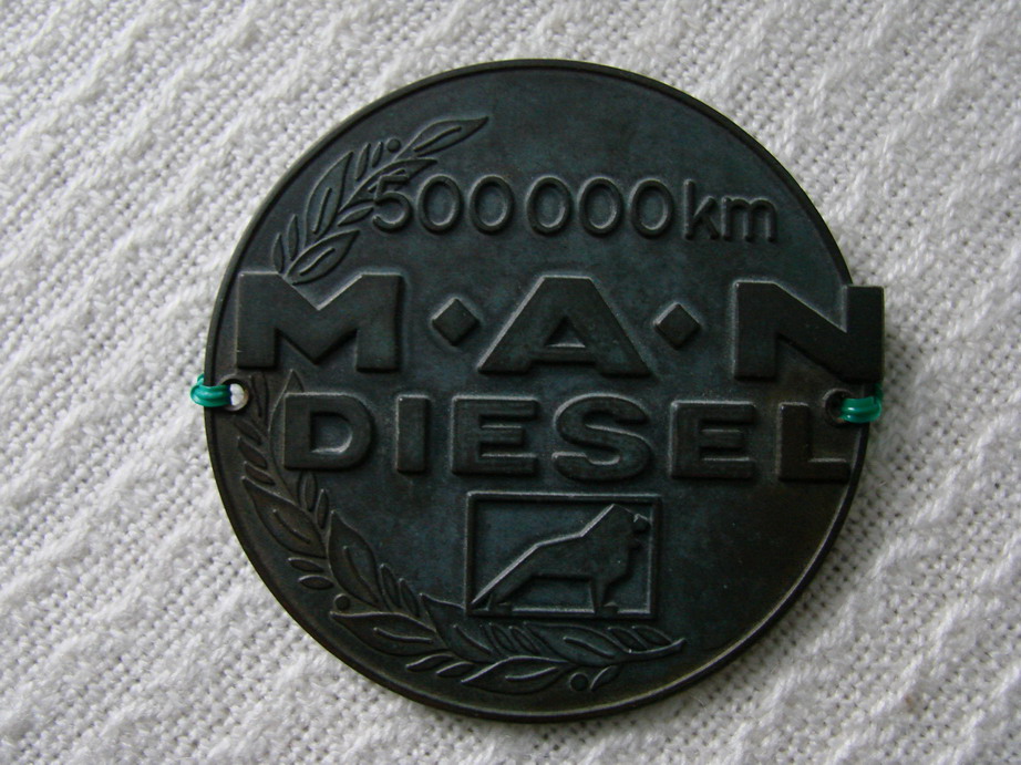 Also wer bekam diese Plakette alles von MAN (gut bei 500000km is klar) aber ich habe sie nur dieses 1 e Mal gesehen und auch sonst an keinem mehr!Sie liegt jetzt schon seit fast 20 Jahren in meiner Vitrine und ist aus Kupfer gefertigt....