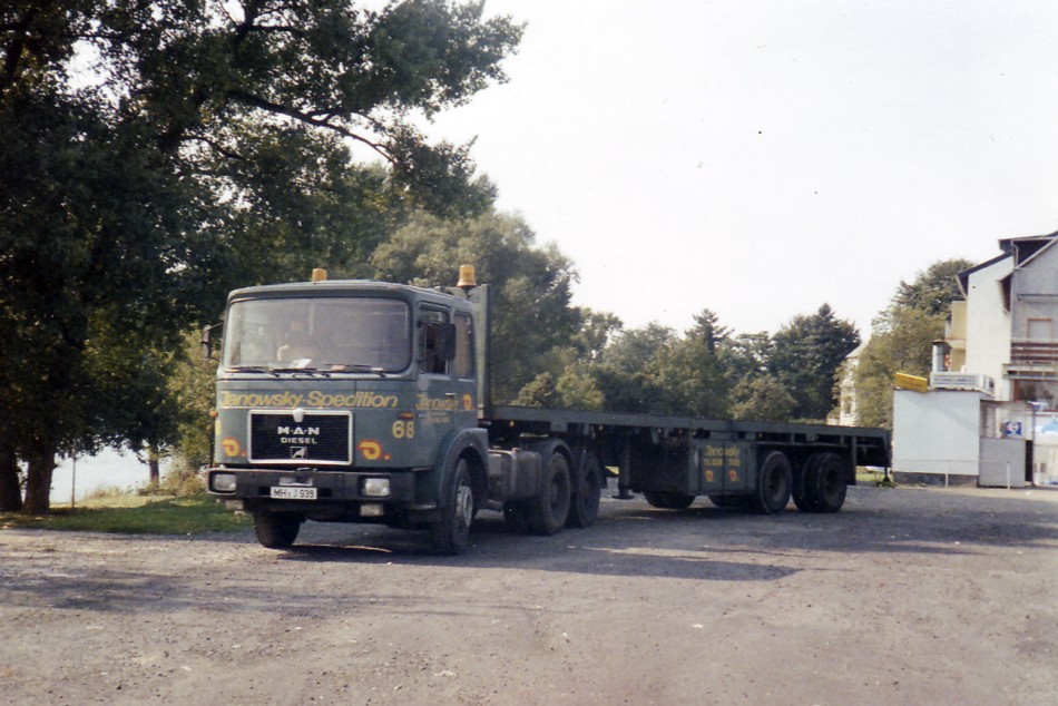 1. M.A.N 22.321 der Spedition Janowsky aus Mühlheim an der Ruhr, fotografiert ca. 1985 in Erpel am Rhein