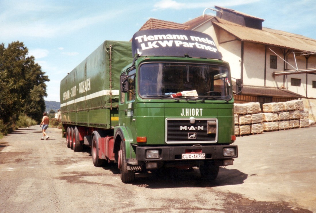 3. M.A.N 19.281 der Spediton J.Hiort aus Cuxhaven, fotografiert 1988 bei den Tonwerken in Erpel am Rhein.
