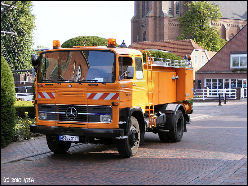 In der Hoffnung, hier in der richtigen Unterabteilung gelandet zu sein: Mercedes LP 1519 mit Metz-Aufbau. Das Fahrzeug wird heute noch im Sommer vom Amt für Grünzeugbewässerung der Stadt Papenburg eingesetzt. Das Kennzeichen "ASD" stand ehemals für den Kreis Aschendorf-Hümmling und ist seit Jahrzehnten schon durch "EL" (Emsland) abgelöst worden.