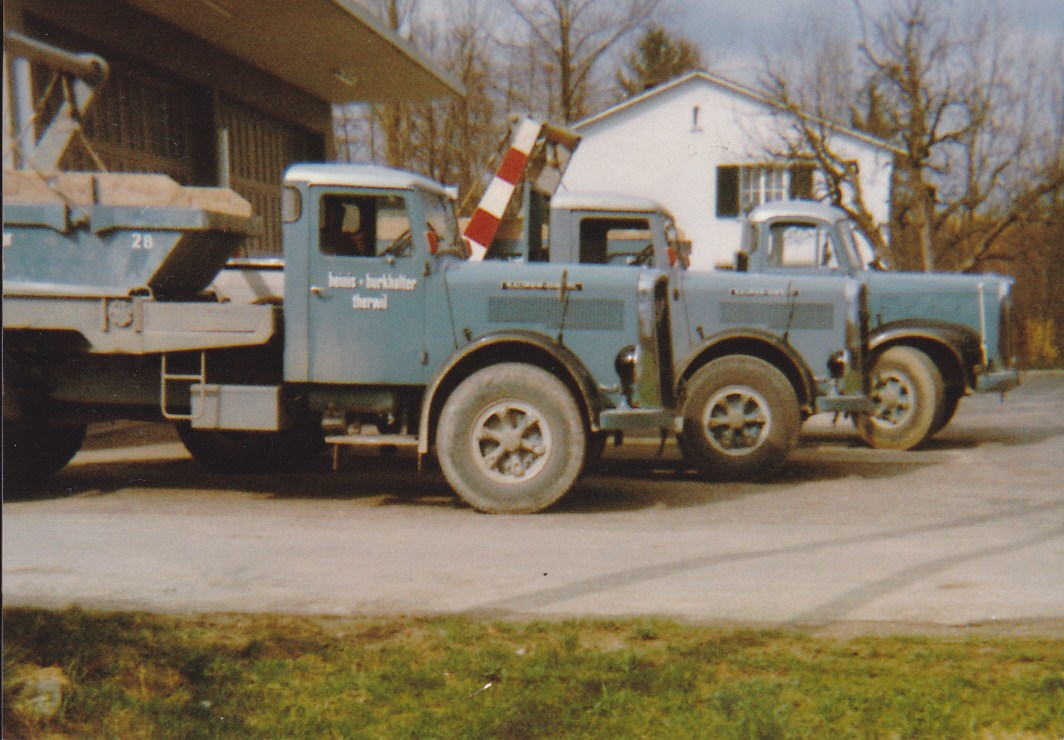 Das ist eine lange Geschichte, mein Vater hat ihn 1957 neu gekauft und ihn selber in Arbon abgeholt. Ca. 1974 hat er ihn dann an eine Baufirma in Basel verkauft. Leider wurde er dann umlackiert (vom Swissair-Blau in Verkehrs-Blau). Im Oktober 2009 konnte ich ihn wieder ausfindig machen, um damit meinen Vater zu seinem 80sten zu überraschen. Mein Vater, mein Bruder und ich hatten soviel Freude an dem Wagen, das wir ihn gleich der Baufirma abgekauft haben. Hier zwei Fotos wie ich ihn bei der Baufirma angetroffen habe. Übrigends der Scania 110-Schlepper war damals auch noch zu haben. Er hat einen Nova-Starter, die noch vorhandene Druckluft reichte um wenigstens den Motor durchzudrehen. Mit dem Stapler und einer Zugstange haben wir ihn angeschleppt, und beim zweiten Versuch ist er gleich angelaufen. Mir kam das Augenwasser. Und das nach mehreren Jahren Stillstand!