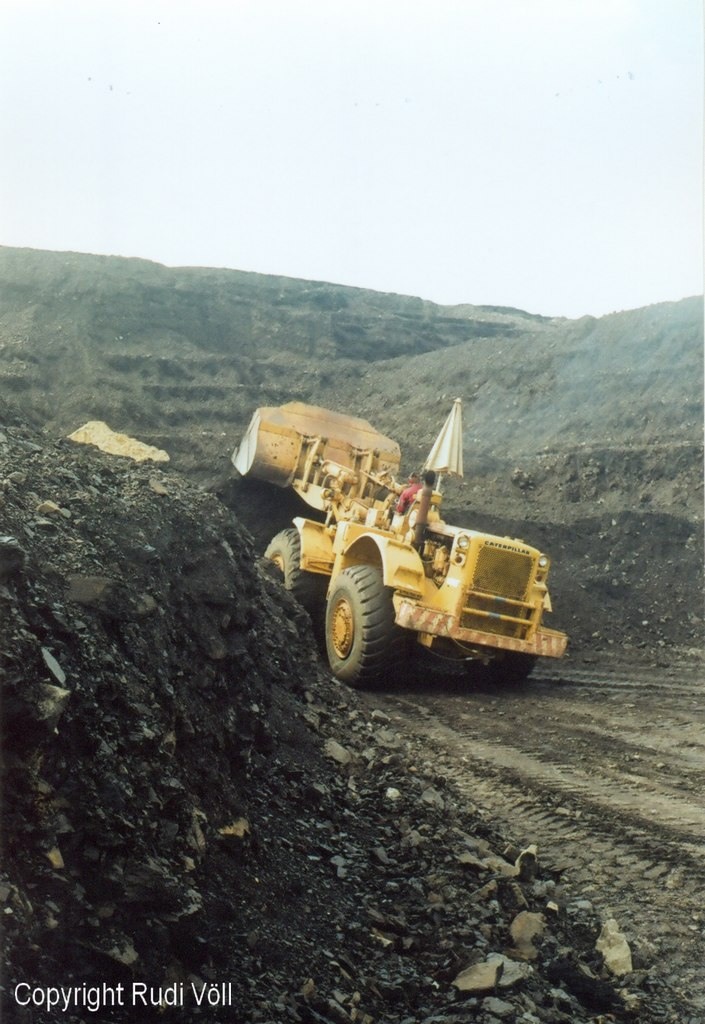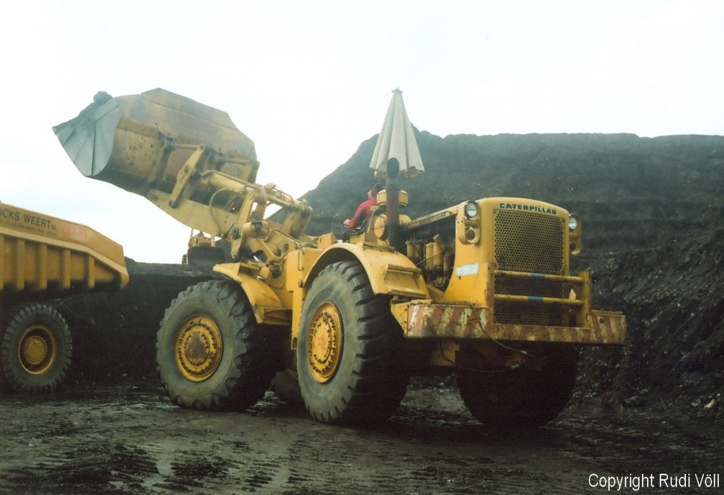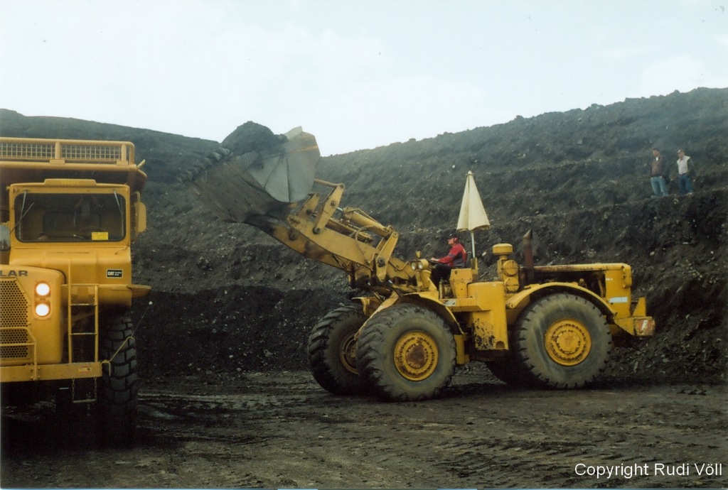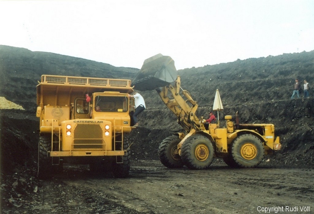 Die Bagger und der Cat 988 - das hat was! Die gezeigte Steigung übrigens auch, wo der Mack nicht weiterkam (und einige andere wohl auch nicht). Ob ich raufgekommen wäre, ist schwer zu sagen! Es gibt Untergründe, da "steckt der Teufel drin" - weicher Oberflächen-Matsch, erinnert etwas an (gebrauchte