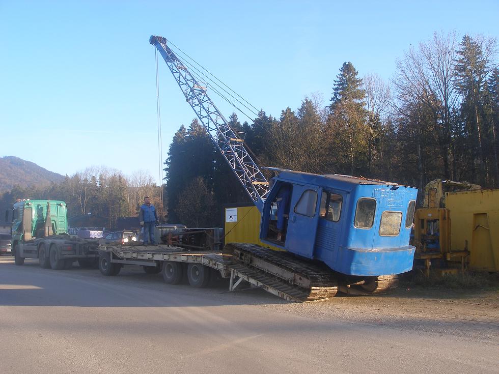 Und der Greifer war ihm auch nicht im Weg, der Bagger stand beim Transport ganz hinten über der Doppelachse. Bilder folgen.