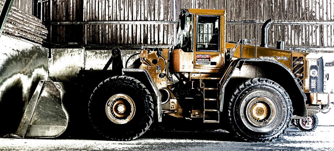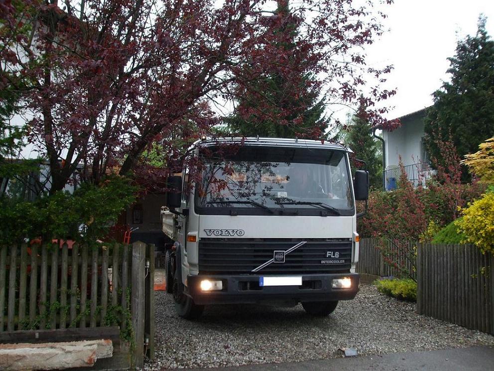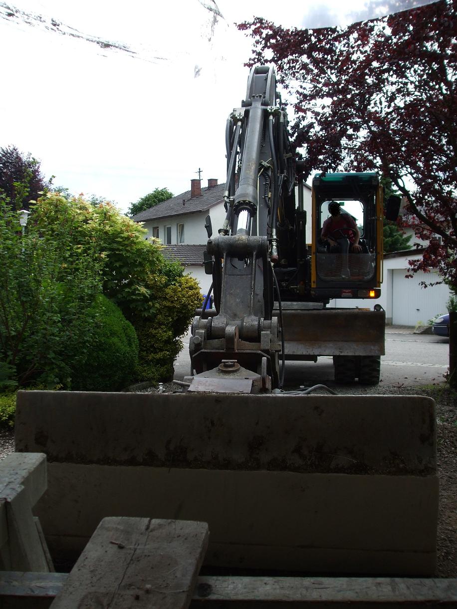Hier der Volvo EW160B beim Abziehen unserer Einfahrt.