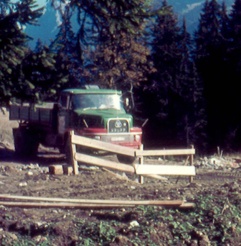 ein ehemaliger LKW-Fahrer der Fa. Strohmaier, Huglfing, hat mir netter Weise einige schöne Fotos/Dias zur Verfügung gestellt. Die Typen wird Edgar sicher identifizieren. der erste (AK701 ?) zieht einen Tieflader mit Weserhuette Seilbagger. Der andere ist beim Seilbahnbau in Garmisch eingesetzt. Im Hintergrund das Estergebirge mit Wank und Hohem Fricken.