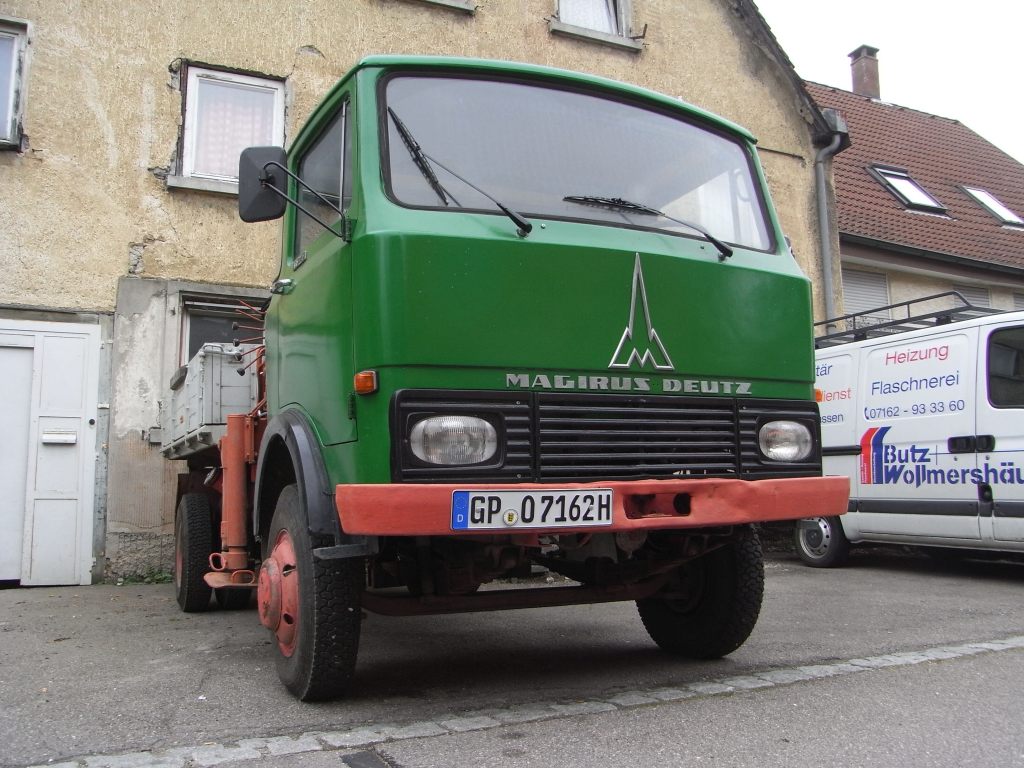 Das ist ein sehr interessantes Foto. Das Auto ist auch in der Literatur abgebildet (Regenberg: Lastwagen-Album Magirus, dort mit ausgefahrenem Arm), aber nicht so schön groß erkennbar. Im Bildtext beim Regenberg-Buch ist von der "Frontgestaltung der Vorserie" die Rede, als Typbezeichnung ist 70D6 und als Baujahr 1966 angegeben.