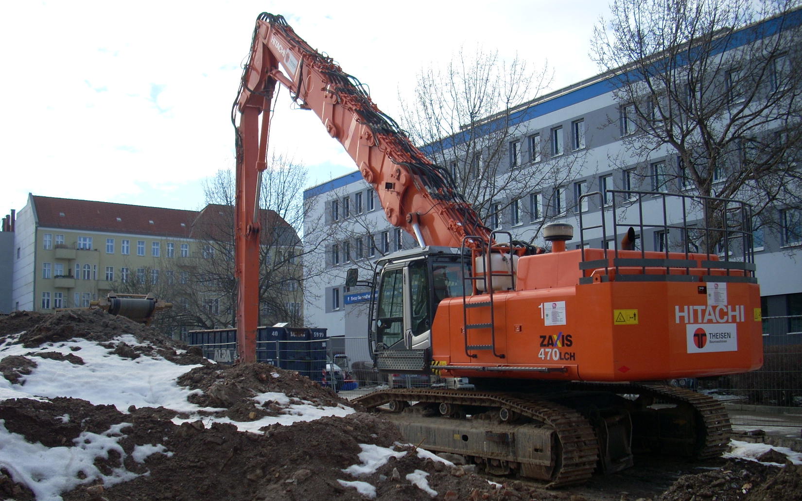 Hallo, mit den Hochlöffel kann ich natürlich nicht mithalten, aber hier einer mit Longfront unter schönem Winterhimmel. Was der da mit dem Tieflöffel gemacht hat weiß ich nicht, abgerissen wurde da auch ein alter Supermarkt-Flachbau, für den man egtl. keinen LF-Bagger braucht... hab ihn leider nicht im Einsatz gesehen. Die bilder stammen von 2010, wollte ich damals schon einstellen, habs dann wohl vergessen, na ja, also jetzt mit leichter Verspätung...