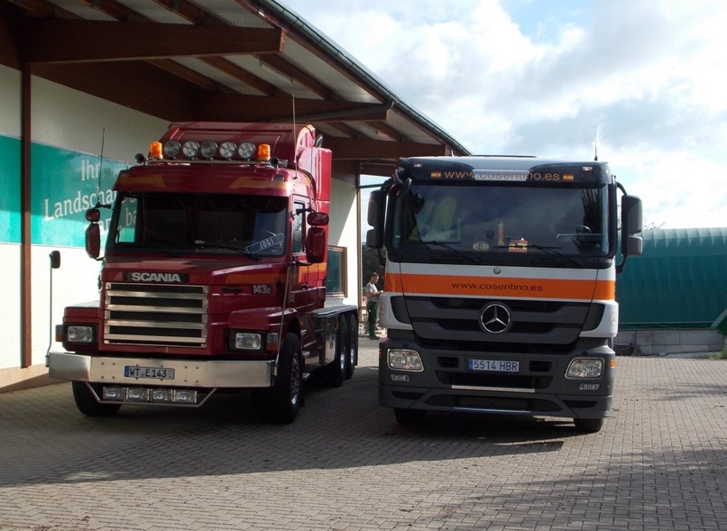 auf der vorigen Seite hatte ich schon mal den wuchtigen Dreiachser von Peeters gezeigt, hier noch mal im Freien von der anderen Seite, aufgenommen im August 2011 beim Truckerfestival im Belgischen Bekkevoort.