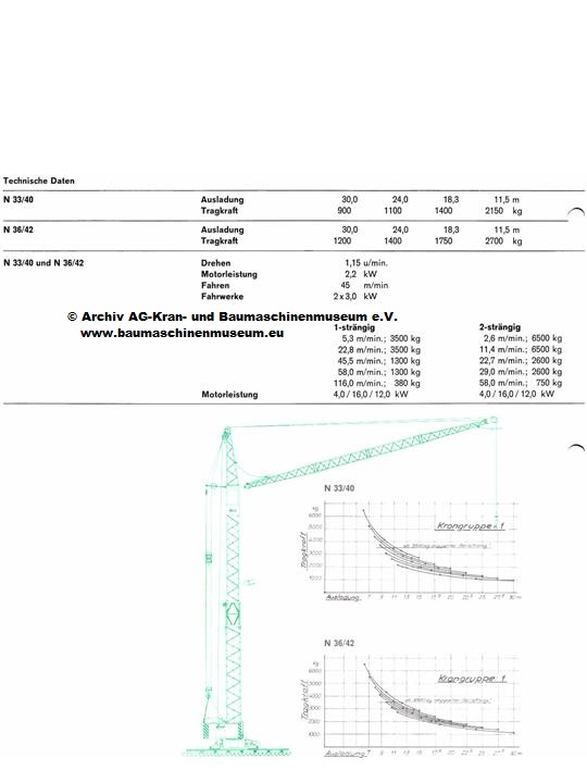 Der baugleiche N 36/42 kam um 1970/71 als nochmals leistungsstärkeres Gerät zusätzlich auf den Markt. Die Krane N 33/40 und N 36/42 waren in vielen Details sehr gut durchdacht und konstruiert. Darüber hinaus waren sie qualitativ hochwertig verarbeitet. Sie fanden einen nicht unbeträchtlichen Käuferkreis und waren insbesondere in Süddeutschland für viele Jahre auf zahlreichen Baustellen zu finden.