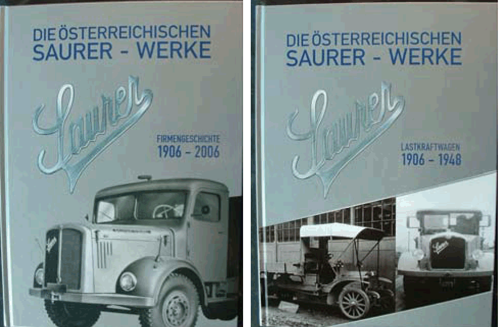 Diese beiden Bände (Band 1: Firmengeschichte 1906-2006, Band 2: Lastkraftwagen 1906-1948 ) sind beim Saurer-Club zu je CHF 80.- erhältlich (www.saurer-club.ch