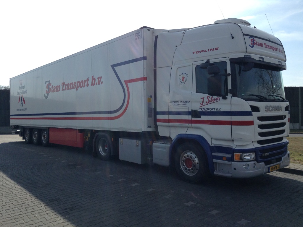 Von mir gibt's heut' einen Scania R 480 von VAN DEN BOS TRANSPORTEN. Weiß evtl. jemand, was die in Ihren doch recht speziellen LKW's transportieren? Die ganze Flotte von denen sieht so aus - aufgenommen im Dezember 2014 auf dem TOTAL-Autohof in Neu-Plötzin an der südwestlichen A10.