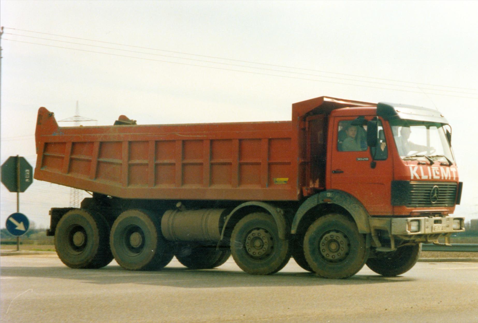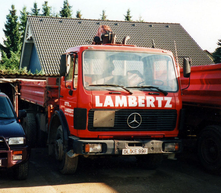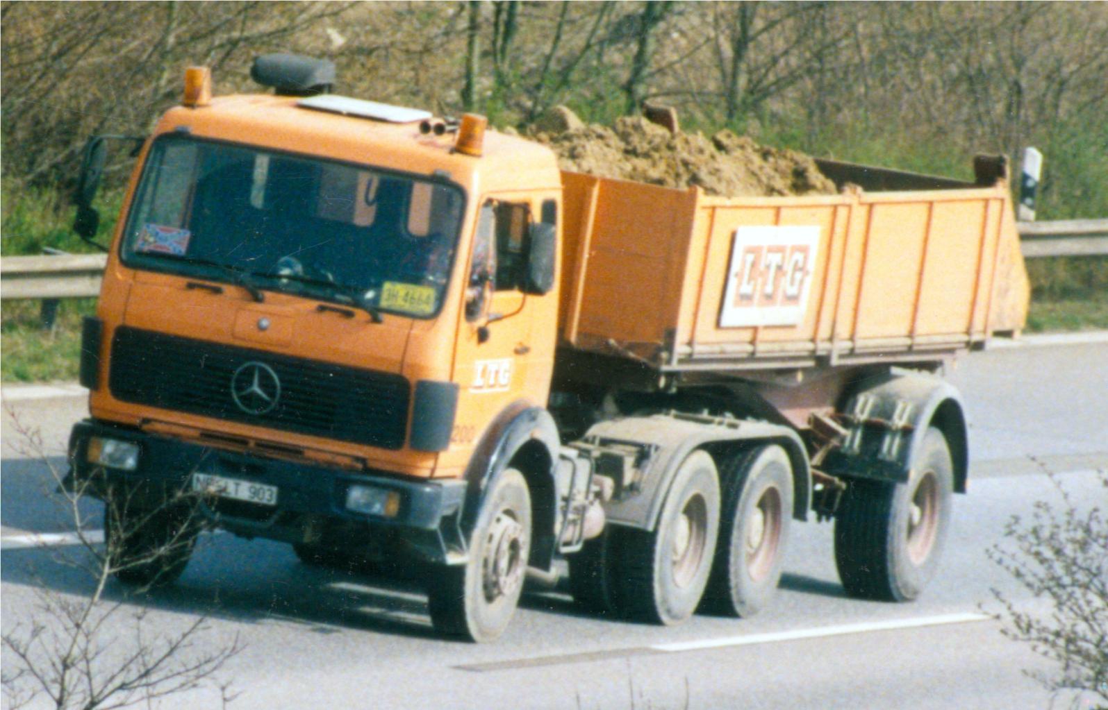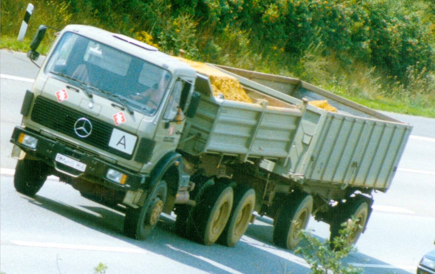 Mercedes 1622 mit Meiller 3-Seitenkipper und Atlas Ladekran, der, mit Ausnahmegenehmigung und 1624 Typenschildern versehen, auch schonmal vor'm 3-achs Anhänger als 40t Zug lief, sehr spritziges Gespann....