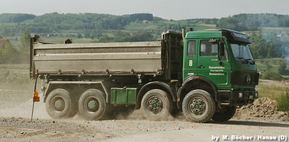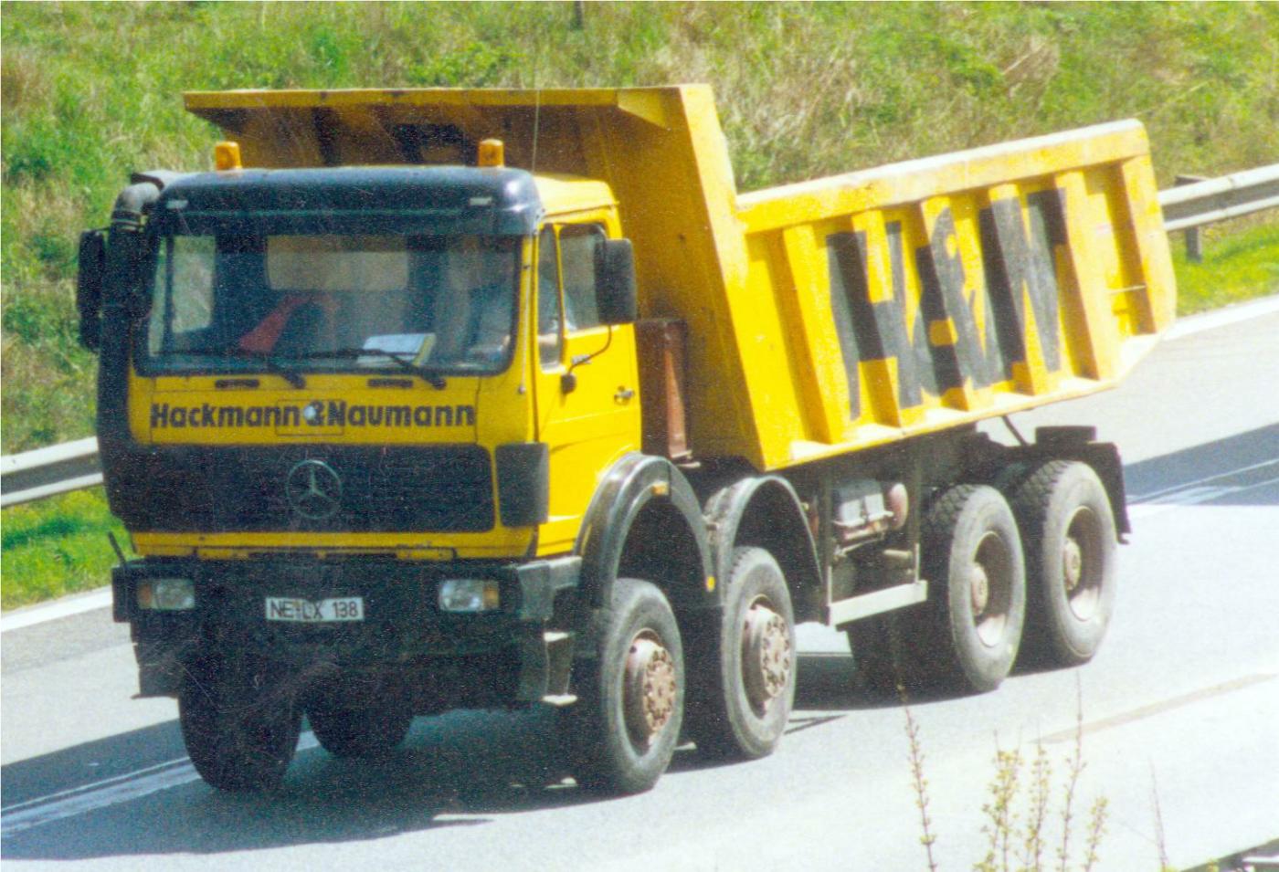Mercedes-Benz NG 3336 8x8 mit Muldenkipperaufbau (der Fa. Hendricks, wenn ich mich nicht irre). Die Abbruchfirma Hackmann & Naumann H&N existiert nicht mehr.