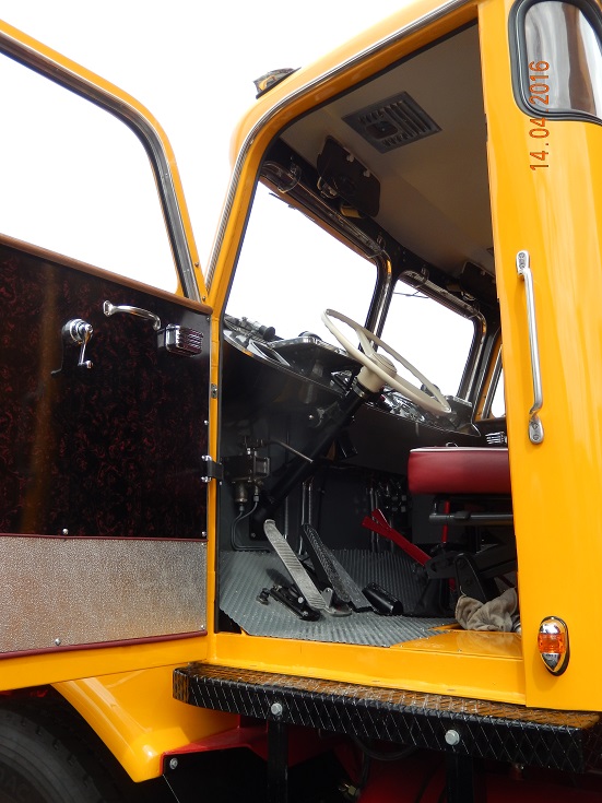 Dann gab es hinten auch noch zwei Einzelsitze, bei denen es mich nicht gewundert hätte, wenn sie entgegen der Fahrtrichtung montiert gewesen wären. Ich weiß es aber nicht mehr. Jedenfalls war es unmöglich, vom Fahrerplatz auf die Beifahrerseite zu kommen - das ging nur außenherum. Ähnlich sah es hinten aus. Insgesamt vier schmale Einzelsitze, jeweils nur durch separate Türen zu erreichen. Der Motor nahm gigantisch viel Platz weg, eben auch weil er sehr breit war.