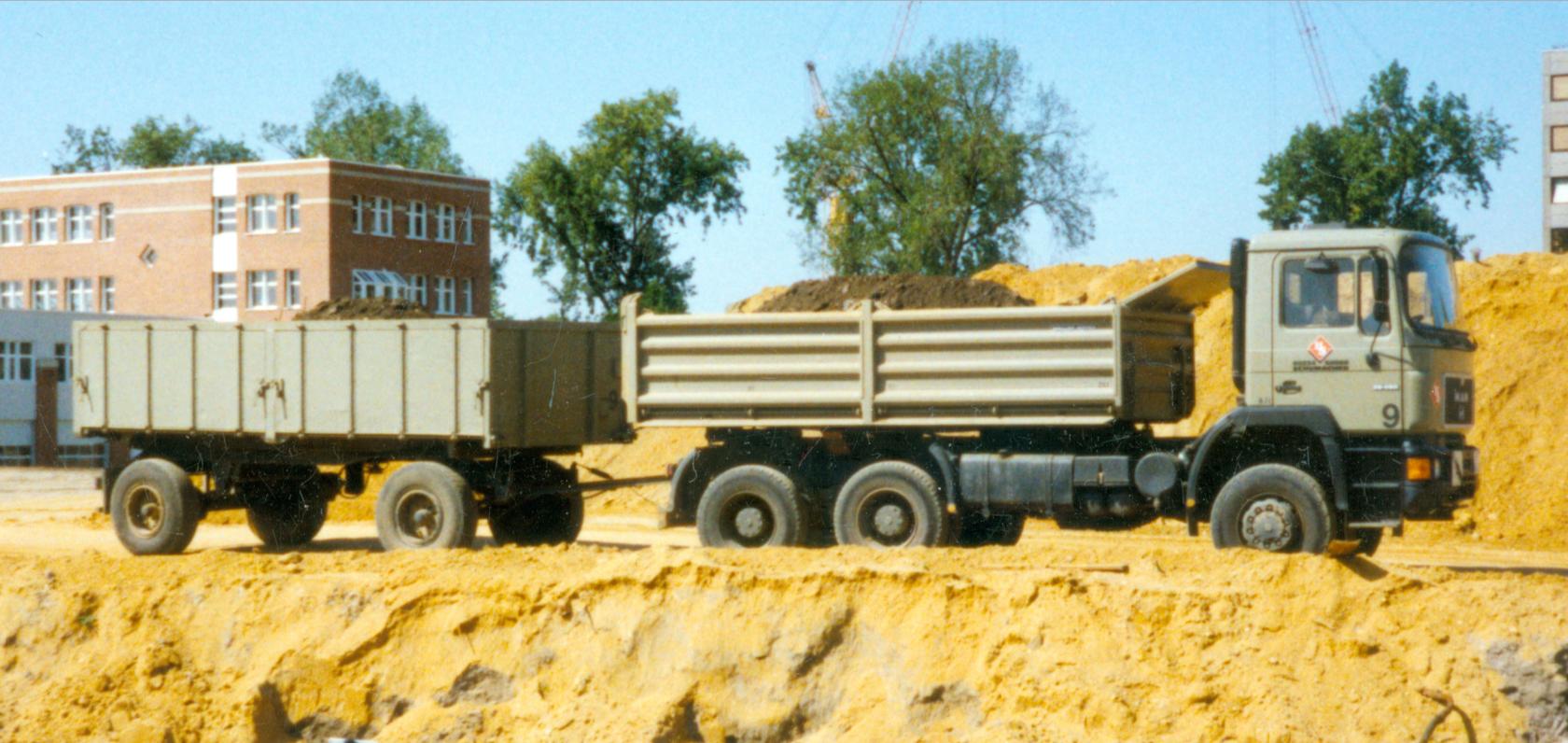 MAN F 90 Allrad mit Auflieger von Orthaus (leider ist der Tiefbauunternehmer Erich Bigalke jr. inzwischen in Konkurs gegangen).