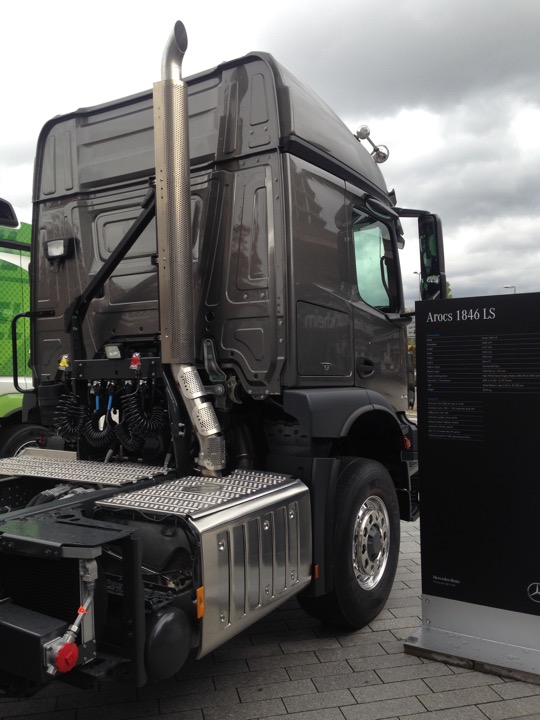 Ich find das Fahrerhaus eigentlich ganz ccol, für den Baustelleneinsatz sogar die bessere Variante. Gerade im Containerbereich, wo man oft ein- und aussteigt, war der Arocs doch bislang zu hoch, schon allein wegen der Gesamthöhe. Jetzt mit HAD und niedriger Kabine wird er endlich auch für den Absetzkipper richtig interessant. Doch die Aufbauhersteller sind alles andere als begeistert, wie die Bauteile von HAD am Fahrzeug verbaut sind.