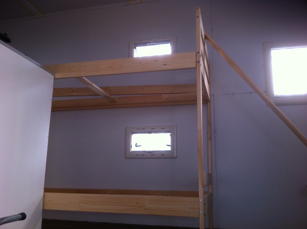 Möbel/ Küche/ Doppelstockbett stehen auch schon bereit, Ikea sei dank, lediglich die Sitzbank müssen wir selbst bauen. Vorher muss aber noch die Decke rein mal schaun wie ich die fest bekomme!?
