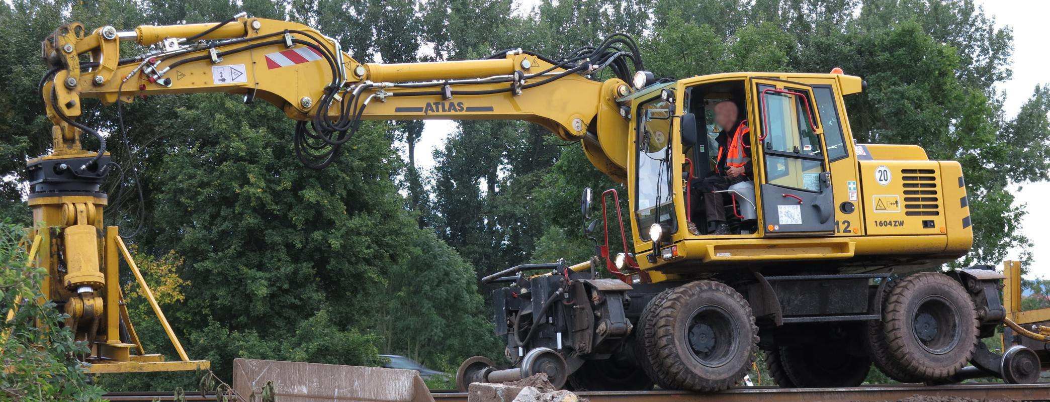 ...der arbeitet im Fahrleitungsbau, der hat einen Telestiel und kann nur Haken, Greifer und Ramme anbauen...