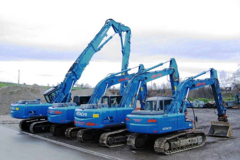 die Hitachis werden auch in der Schweiz immer beliebter, da gabs vier neue Maschinen auf einen Schlag, einen 160er, zwei 250er und einen 350er mit Tieflöffel und Abbruchausleger